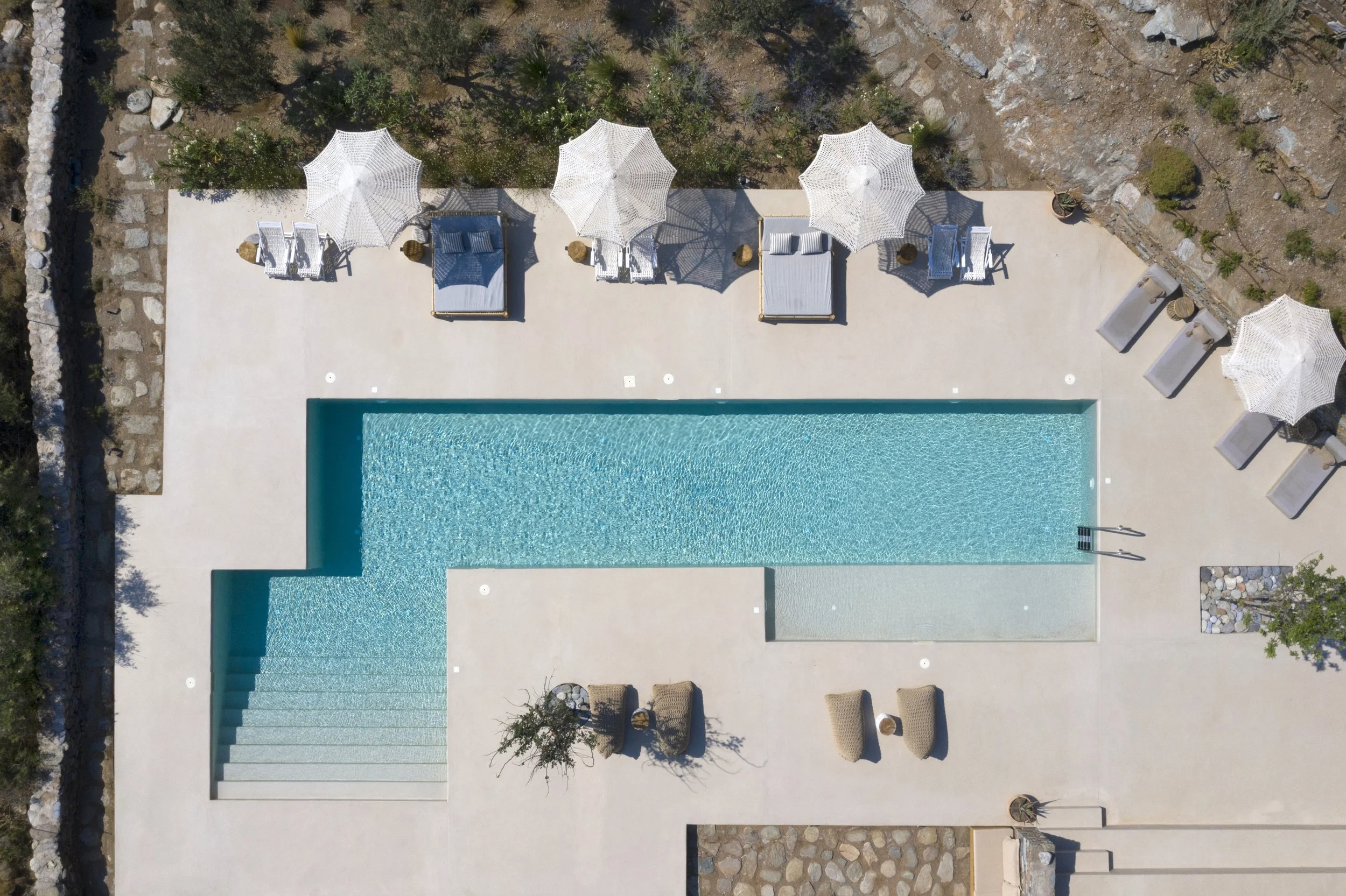 With the utmost respect to the natural ecology, accommodations are restored Kathikies (traditional Greek stone farmhouses) that date back hundreds of years, merging into the hill’s rocky habitat and overlooking an endless ocean view.