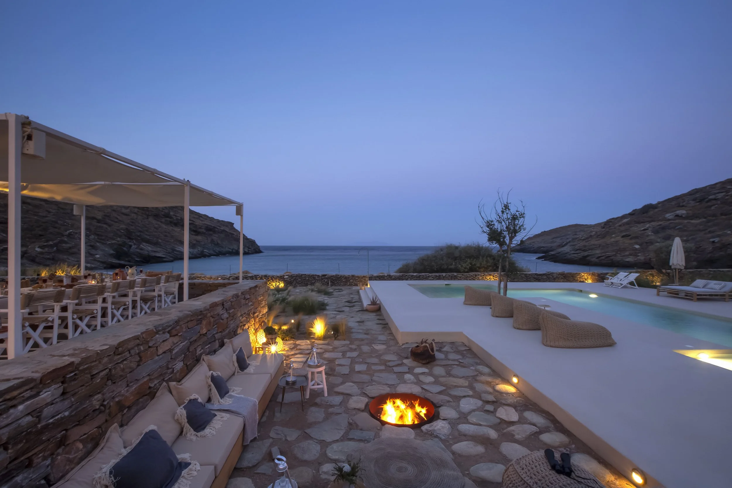 Located in Psathi Bay on the Greek island of Kea, the retreat center is nestled within a stoney mountain range in front of a remote bay. Its virgin landscape, bountiful farm, and traditional design, allow its visitors to enjoy the silence and peace of nature and the authenticity of Greek culture.
